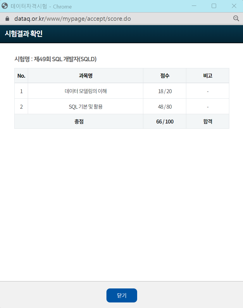 결과는 66점으로 합격 :)