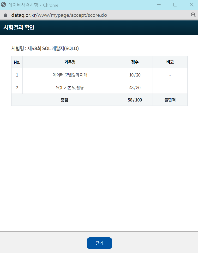 48회차에선 58점으로 불합격.. ㅂㄷㅂㄷ