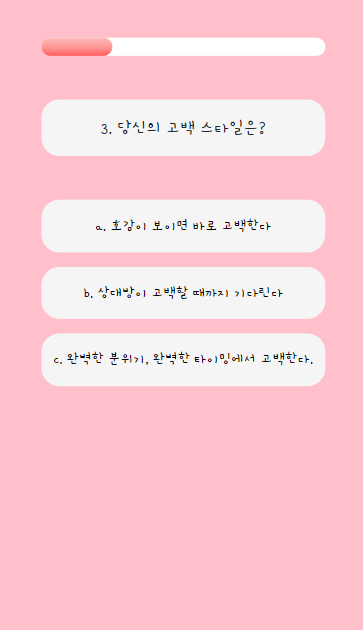 맨 위에 게이지는 그라데이션도 주고 질문이 12개라 100%에서 12등분하여 단계별로 게이지가 차도록 세팅해주었고