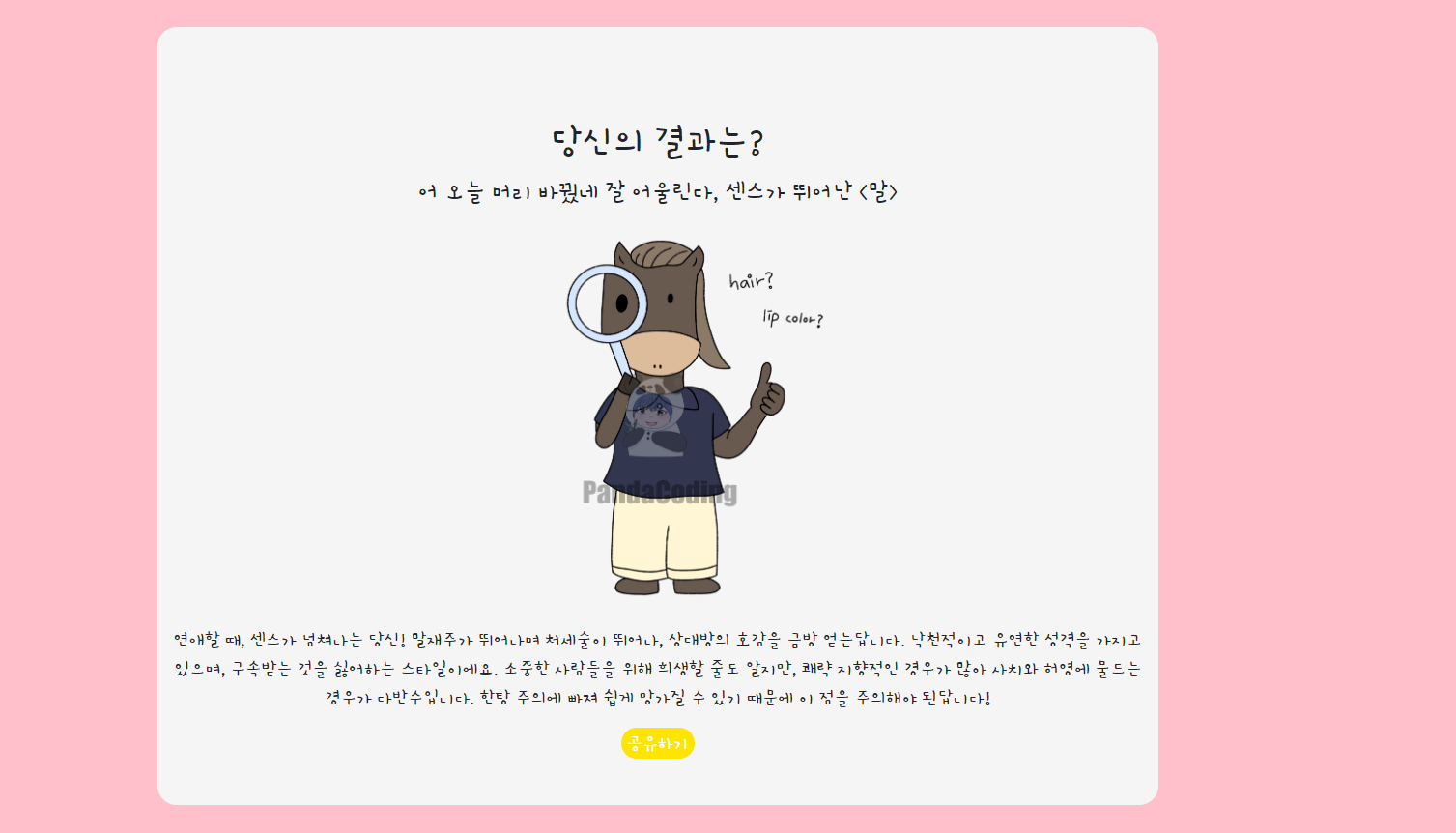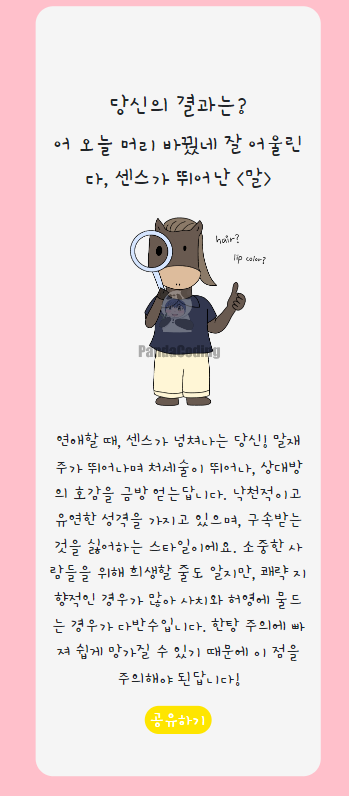 이렇게 해서 HTML, CSS, javascript를 통해 mbti 만들기 완성!